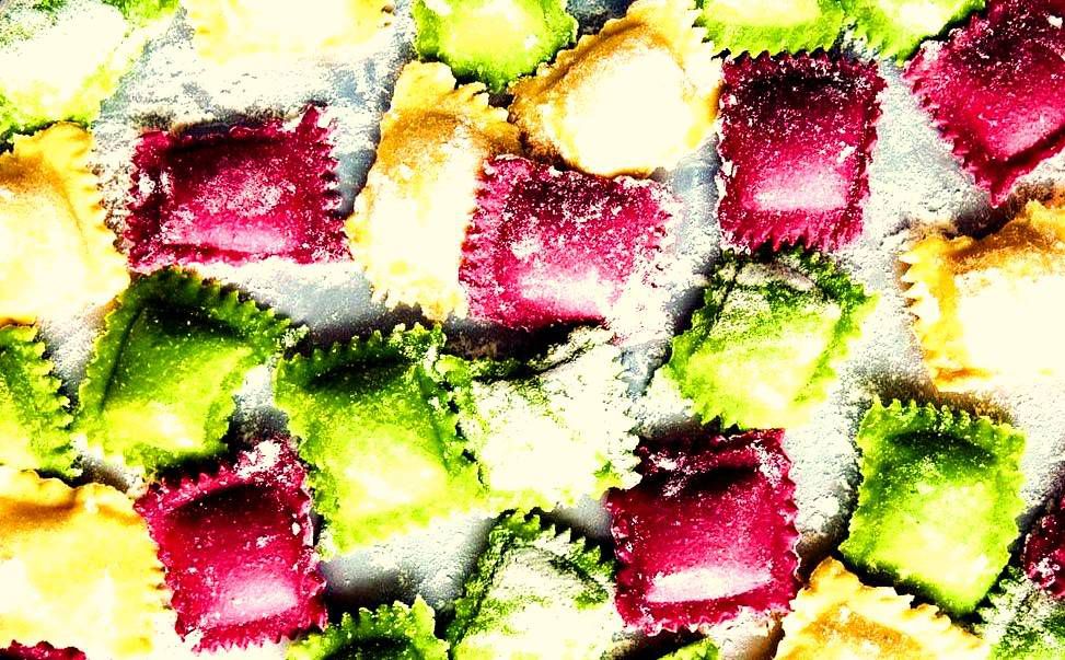 - сок из свеклы очень активный и даже малое количество дает розовый цвет, иногда заменяю красной капустой, но она бывает, что дает остроту тесту и, в таком случае, надо не перчить фарш или наливать чуть-чуть сока для бледно-розового окраса;