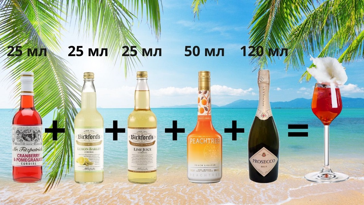 Исходя из одного лишь описания, становится понятно, что микс выходит по-летнему освежающим. Коктейль делают из следующих ингредиентов: