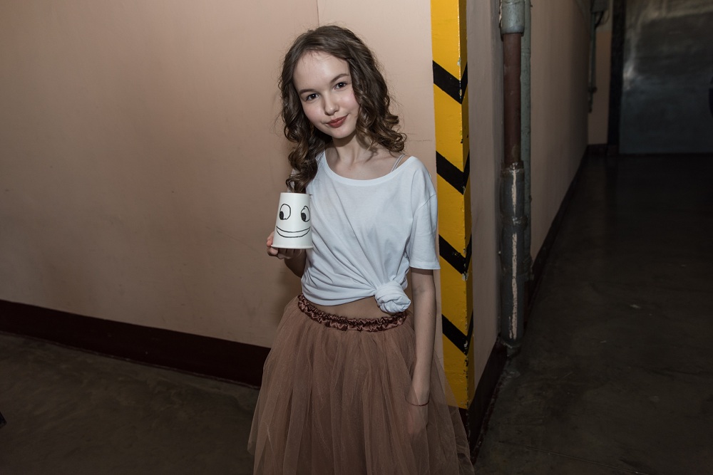 В 10 лет во время очередного выступления нужно было выделить глаза и нанести легкий тон – так я сделала свой первый в жизни макияж! С тех пор при необходимости крашусь. Хотя на одной из съемок был случай, когда мне показалось, что мейка действительно много: тональный крем-консилер-пудра-тональный крем-пудра – все это было у меня на лице. Но, конечно, на камере этого макияжа не было видно.