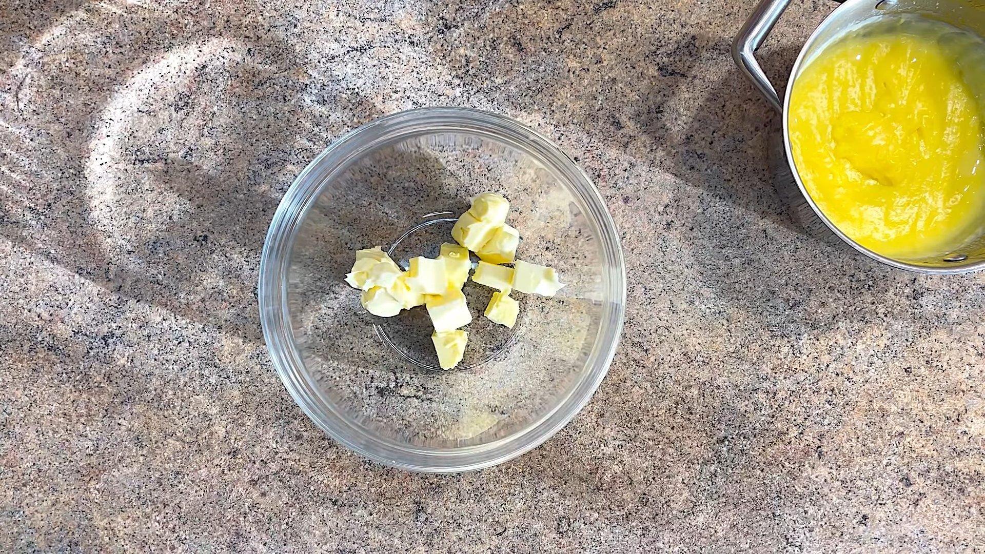 Для охлаждения крема переливаем его в любую миску или широкую форму.