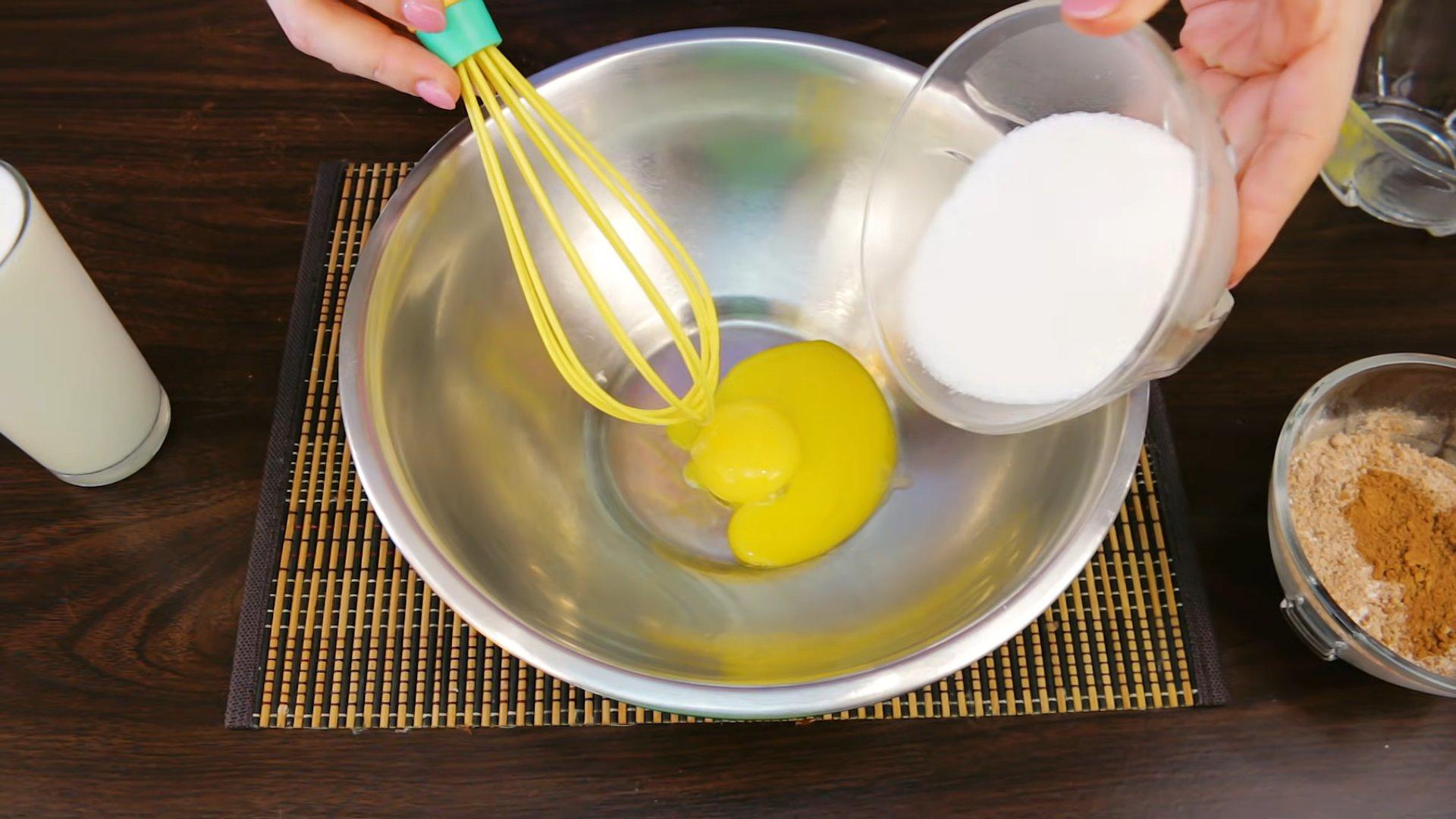 Оставшуюся половину сахара добавляем к взбитым яйцам