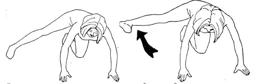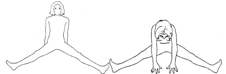 - «Сидя на полу» – сесть на твердую поверхность, широко расставить ноги в разные стороны, поместить руки за спиной, прижав ладони к полу так, чтобы лопатки были сведены, голову поднять вверх.