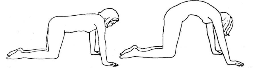 - «Упор на четыре точки» – встать на четвереньки, выпрямить спину, поставить руки и ноги под прямым углом к полу, голову слегка опустить.