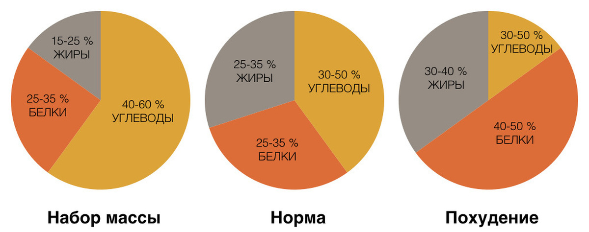 В целом для набора массы специалисты рекомендуют применять схемы (в процентах)
