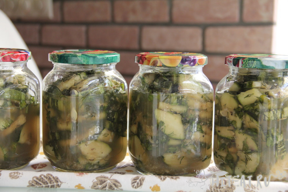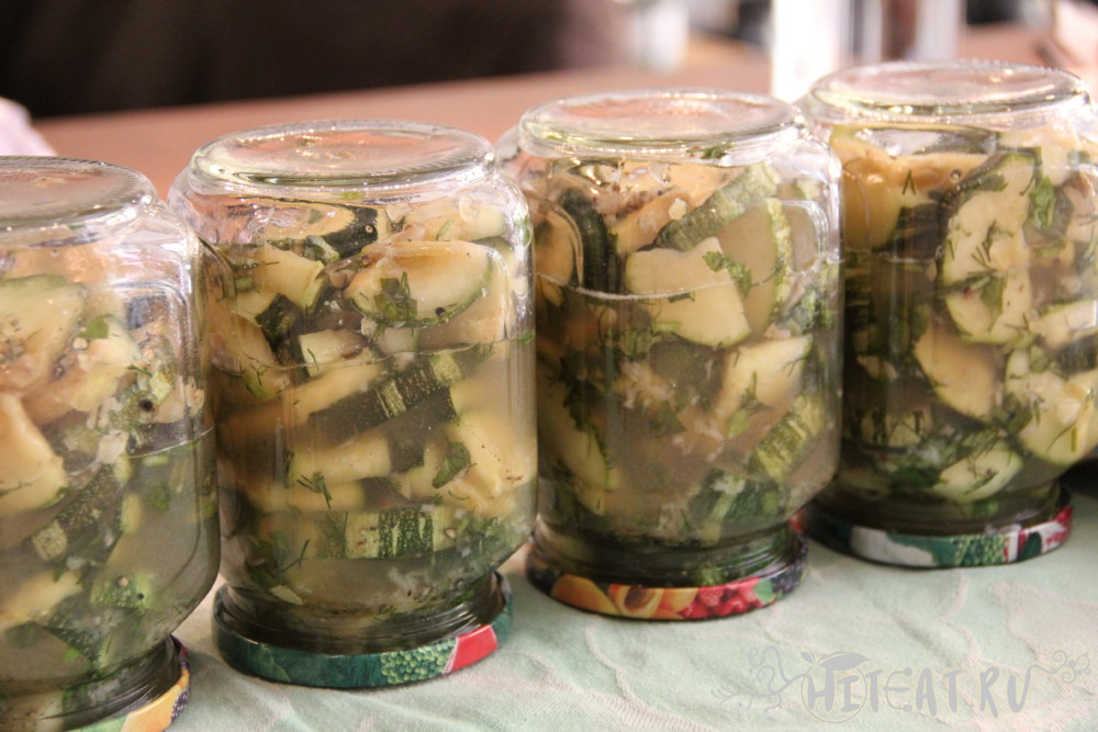 Кушать приготовленные овощи можно спустя 2 недели: за это время цукини полностью просолятся. Срок хранения, при котором цукини не потеряют свои вкусовые качества, составляет 1 год. В это время заготовки следует хранить в темном прохладном помещении, исключающем замораживание маринада.