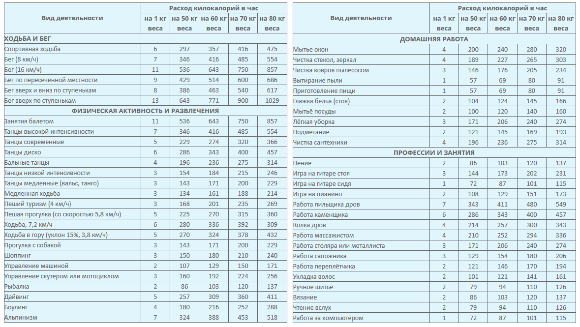 Имея данные о базовом уровне метаболизма и коэффициенте активности, можно высчитать свою норму калорий.