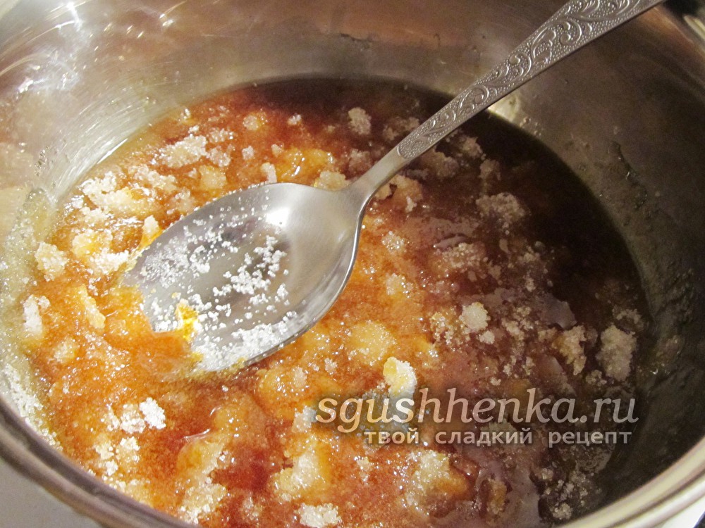 Растворите в чайной ложке воды соду и влейте в немного остывший сироп. Варите еще 5-10 минут. Образовавшаяся сверху пена сойдет за это время