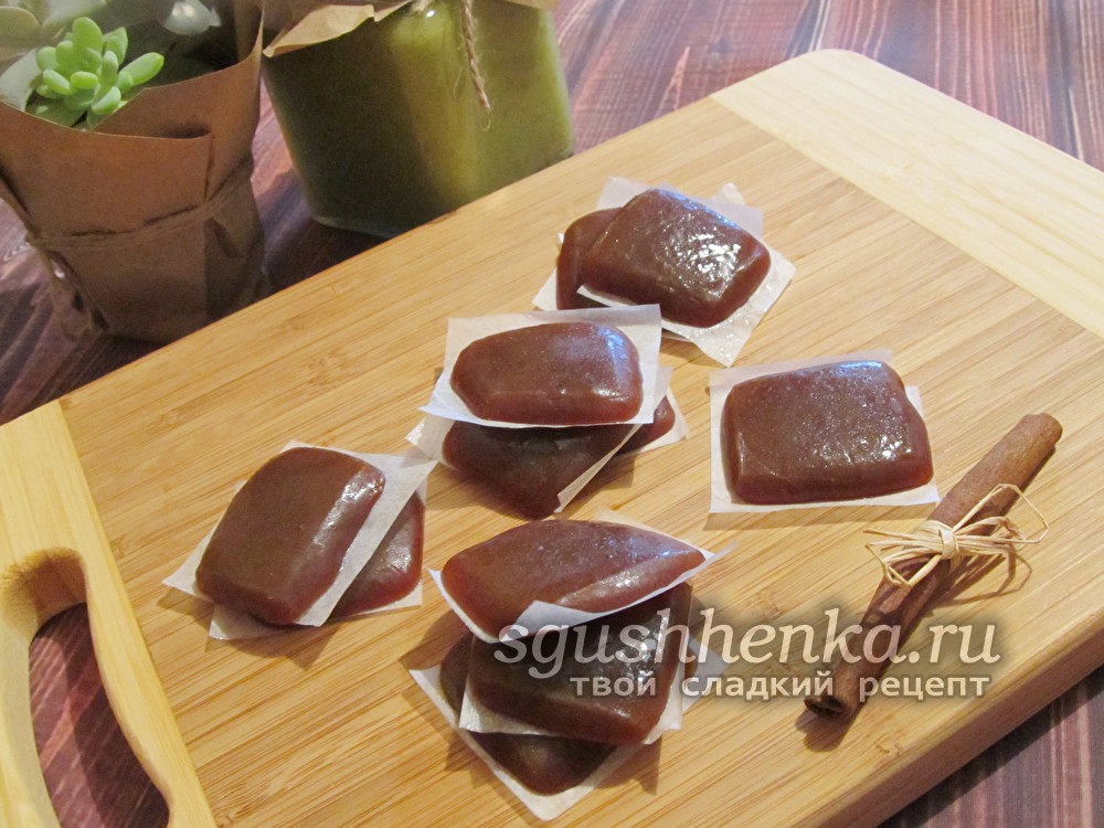 Выложите настоявшуюся смесь на стол и нарезайте на небольшие кусочки. Чтобы нож не прилипал к десерту и не деформировал изделия, нужно посыпать лезвие сахарной пудрой или смазать маслом. Резать лучше надавливающими движениями, а не пилящими.