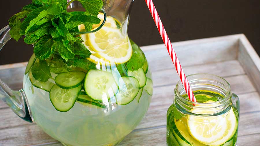 Огурец стоит очистить от кожи, а лимон использовать, напротив, с кожей. Имбирь разгоняет метаболизм, лимон богат витамином С, а мята обладает мочегонным действием, огурец же насыщает организм калием и магнием.