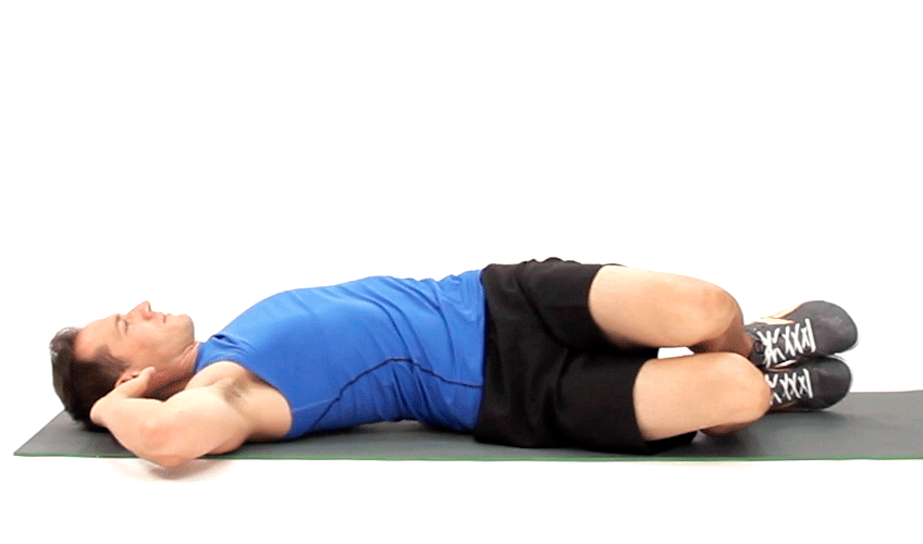 Базовый подъем. Ложитесь на пол, согнутные в коленях ноги поставьте на ширину плеч. Руки заведите за голову, при этом локти должны смотреть в стороны. Держите голову прямо, глаза смотрят вверх. Поднимаете тело на вдохе, на выдохе – возвращаетесь в стартовую позицию. Поясницу от пола ни в коем случае не отрывать! Плюс обязательно следите, чтобы руки не поддерживали шею – подниматься нужно только с помощью мышц пресса. Упражнение повторите 45 раз – 3 подхода по 15 подъемов.