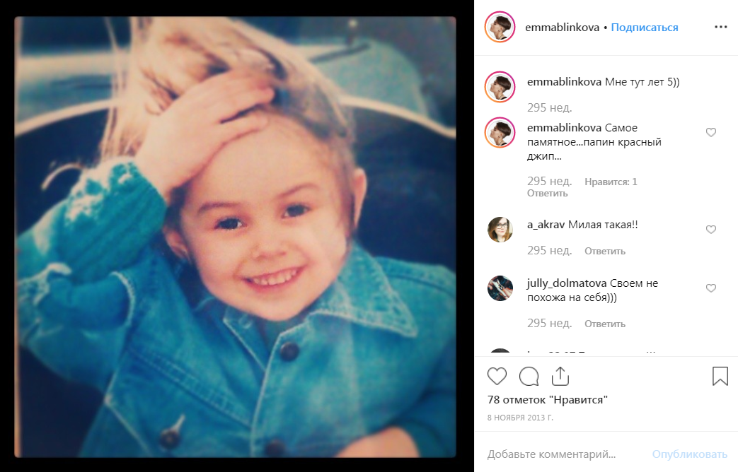 Эмма Блинкова и ее детство. Инстаграм: https://www.instagram.com/emmablinkova/
