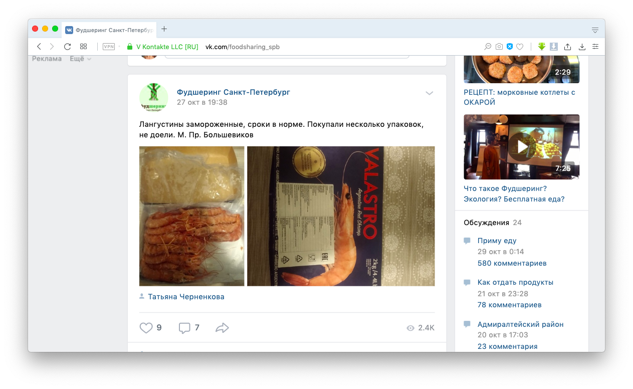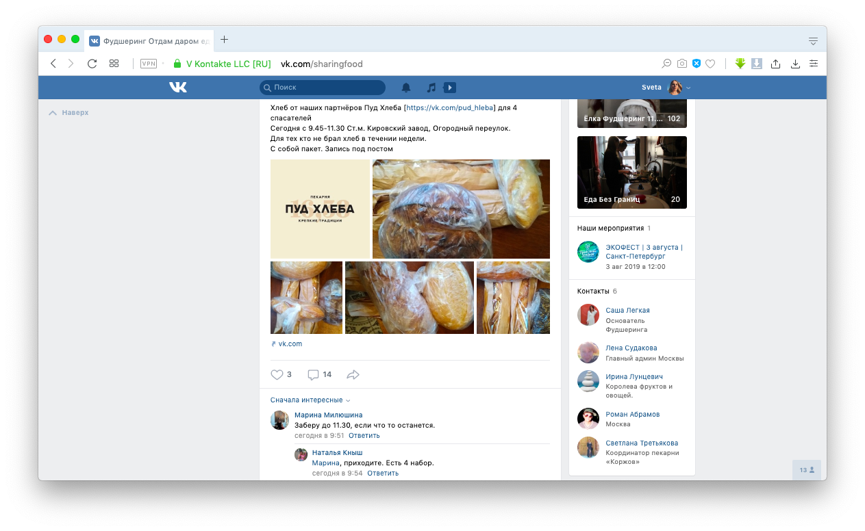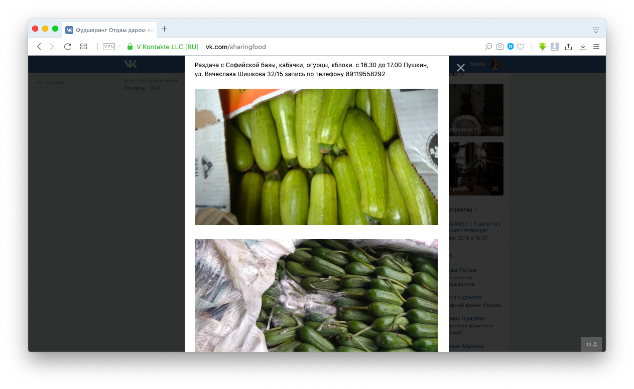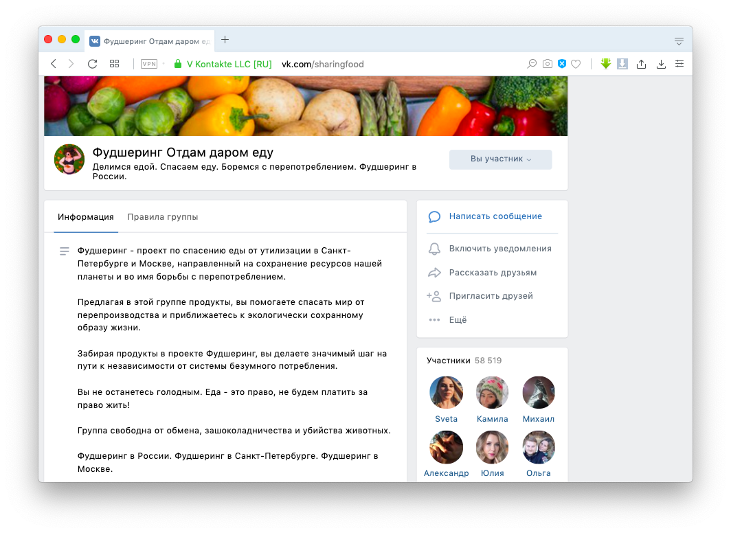 В самом большом сообществе фудшеринга во Вконтакте состоит 58 000 участников