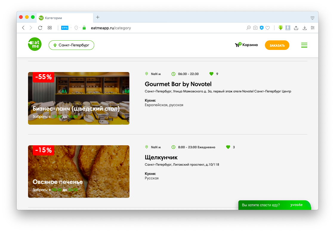 Рудольф: Зарубежные компании, с которыми сотрудничает компания eatme app, соглашались почти сразу, так как для них экологическая осознанность часто является важным фактором. Что касается российских компаний, то их в первую очередь интересует прибыль, именно поэтому в наш проект мы включили коммерческую составляющую: компании не только спасают еду, но и зарабатывают деньги.