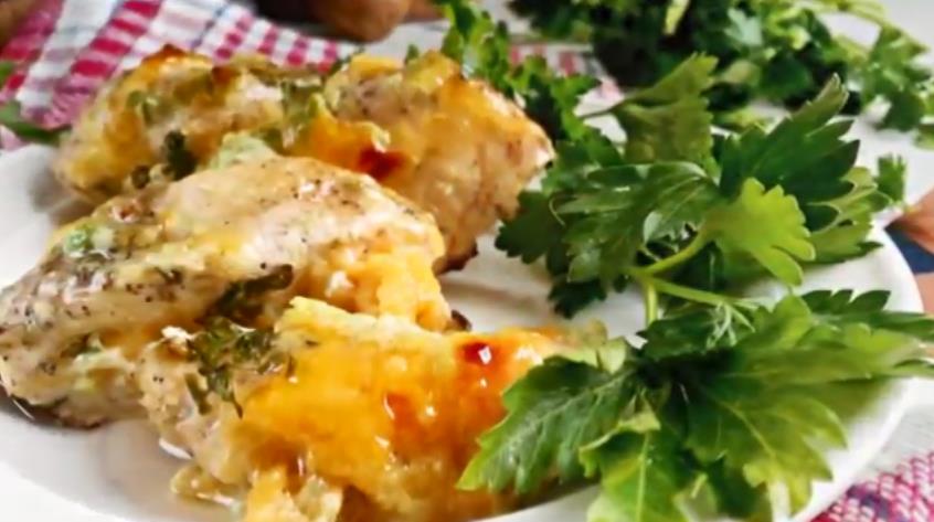 Куриные отбивные из филе со сметаной, запеченные под сырной шубой