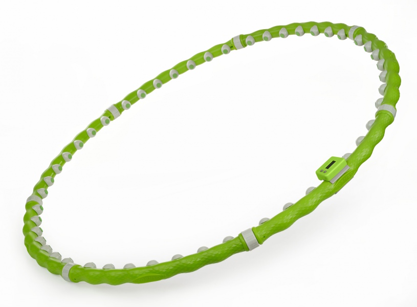 Купить массажный обруч хулахуп выгодно еще и потому, что он подходит для любой комплекции и роста человека. Конструкция разборная, продумана таким образом, что при необходимости можно управлять нагрузками: добавить секции, магниты, массажные элементы, по 2 штуки на каждую деталь. Это универсальный тренажер, цена приблизительно 50$.