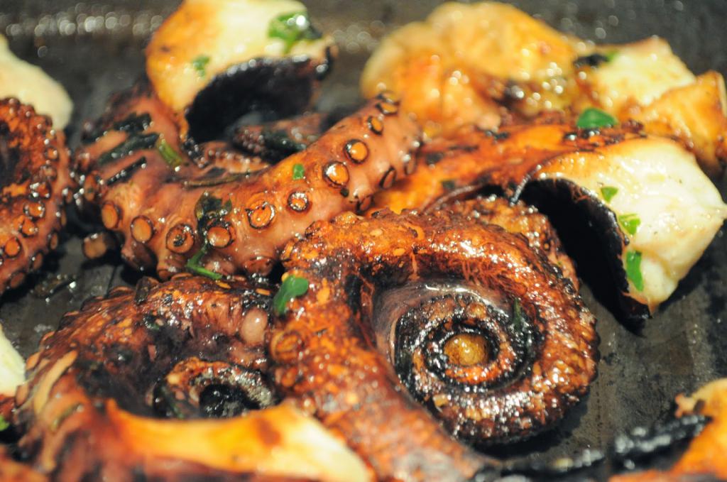 Важно, чтобы осьминог был небольшим – в этом случае мясо нежное и готовится быстро. Обжаривать кусочки нужно всего несколько минут до появления румяной корочки