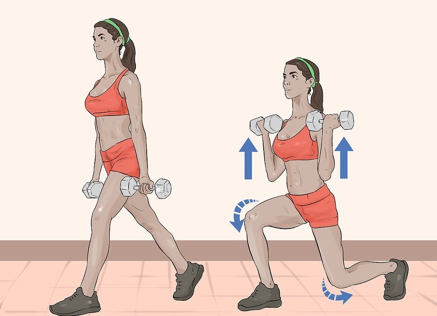 - Если у вас возникли трудности с выполнением этого упражнения, попробуйте использовать более легкий вес или просто сначала выполнить выпады. По мере того, как вы наращиваете свои силы, вы можете увеличить вес.