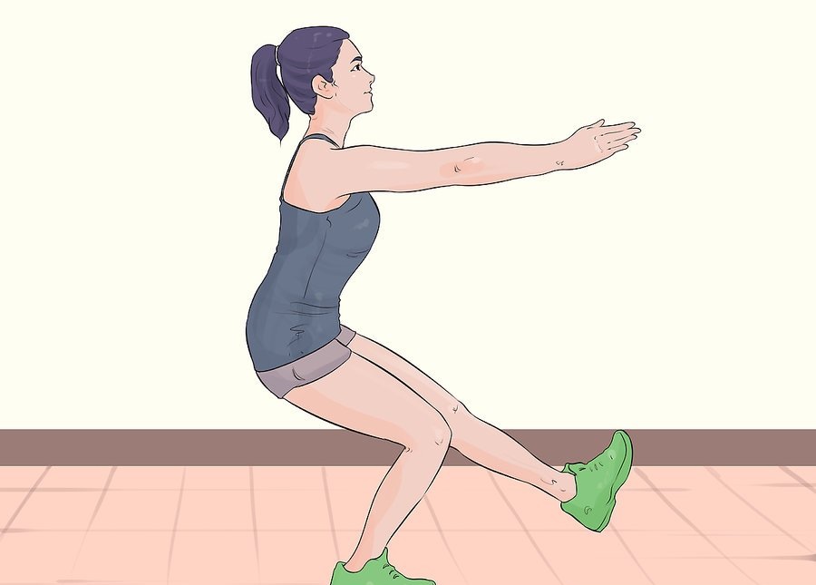 Выполните одну минуту приседаний на одну ногу для каждой ноги. Встаньте прямо, балансируя на правой ноге. Держите левую ногу согнутой в колене, а левую ногу оторвите от земли. Согните правую ногу в колене и осторожно присядьте. Приседая, наклоните верхнюю часть тела вперед в бедрах. Чтобы выполнить одно повторение, вытяните правую ногу и вернитесь в исходное положение. Повторите это движение в течение одной минуты. Затем переключитесь на левую ногу и повторите еще минуту. Отдохните 30 секунд после того, как закончите упражнение левой ноги