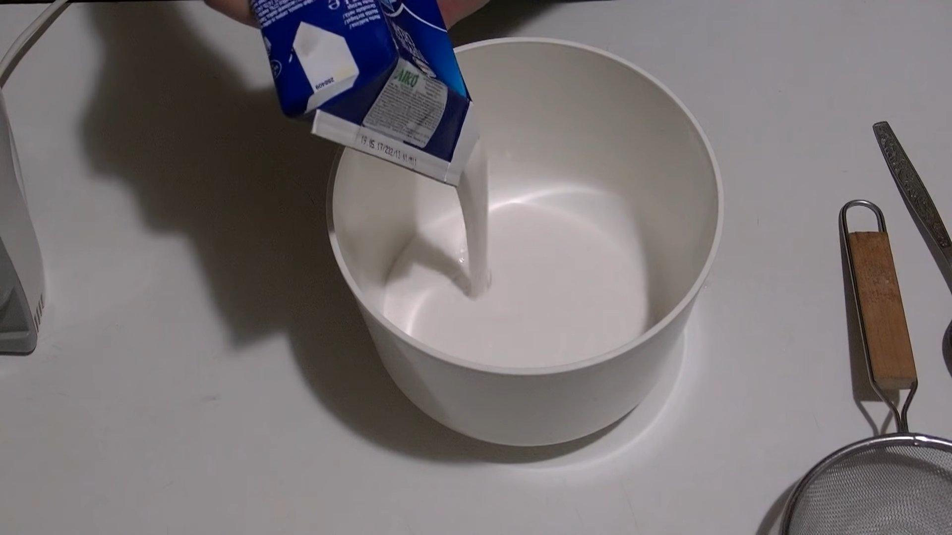 Хорошо охлажденные сливки выливаем в глубокую миску.