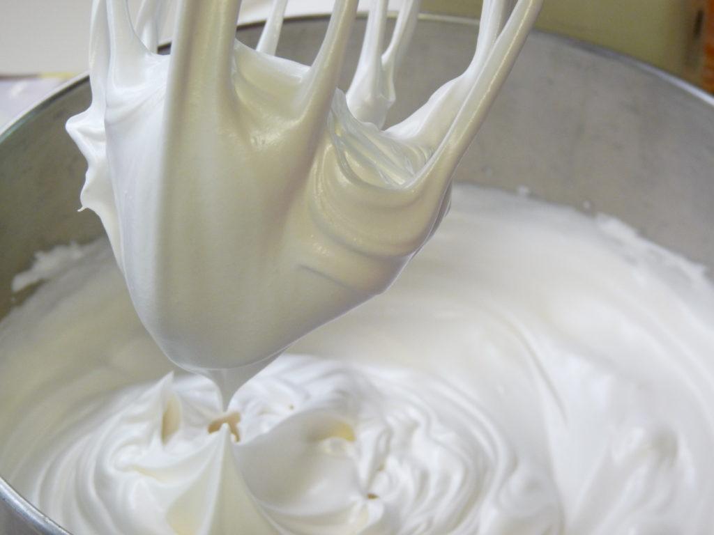 При отсутствии миксера вы можете воспользоваться подручными средствами для взбивания белков: вилкой, венчиком или блендером с насадкой без ножей. В приготовлении крема таким способом есть плюс: вы сможете тонко чувствовать грань формирования пиков необходимой структуры.