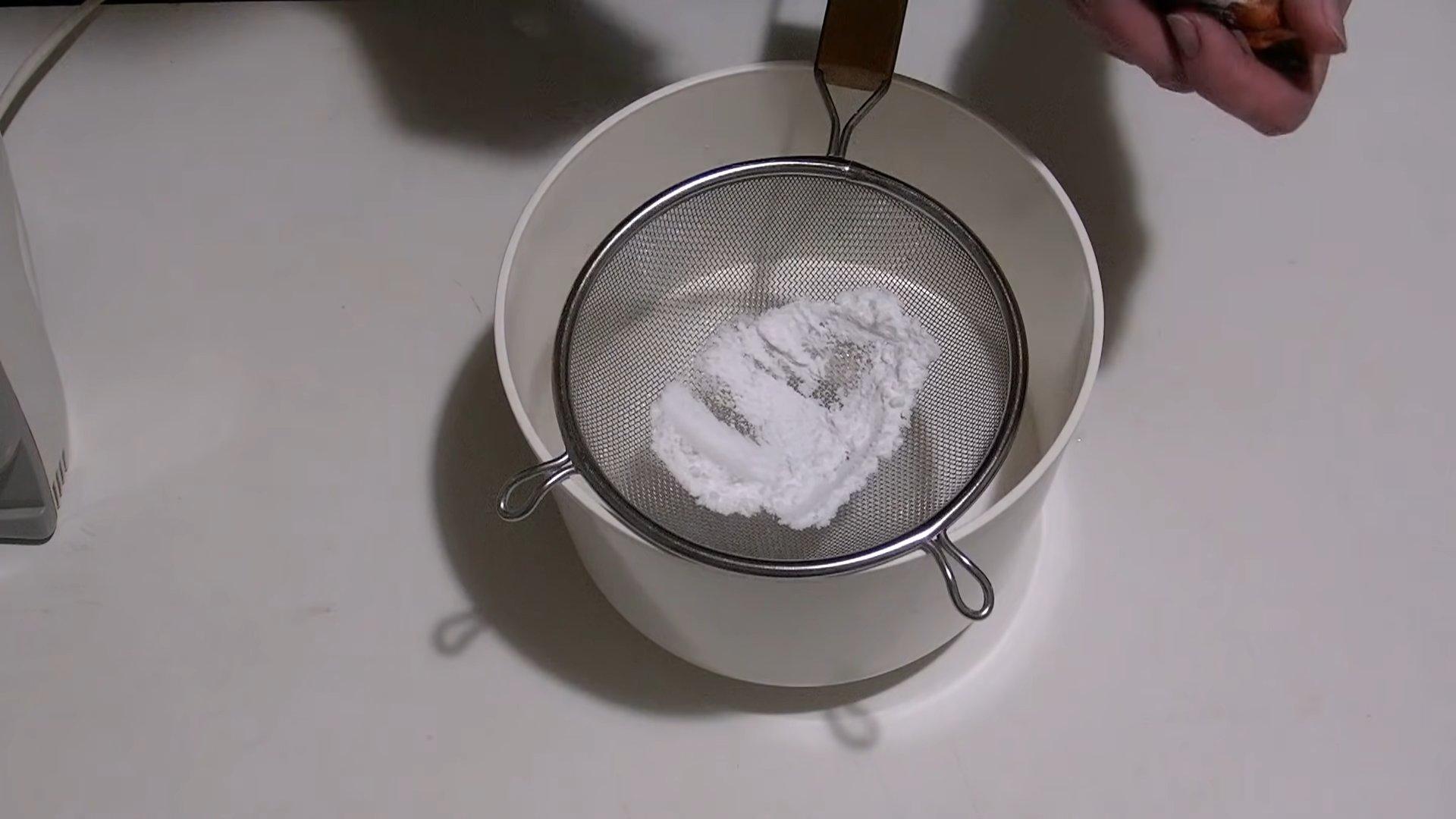 Сахарную пудру просеиваем через сито и добавляем к сливкам.