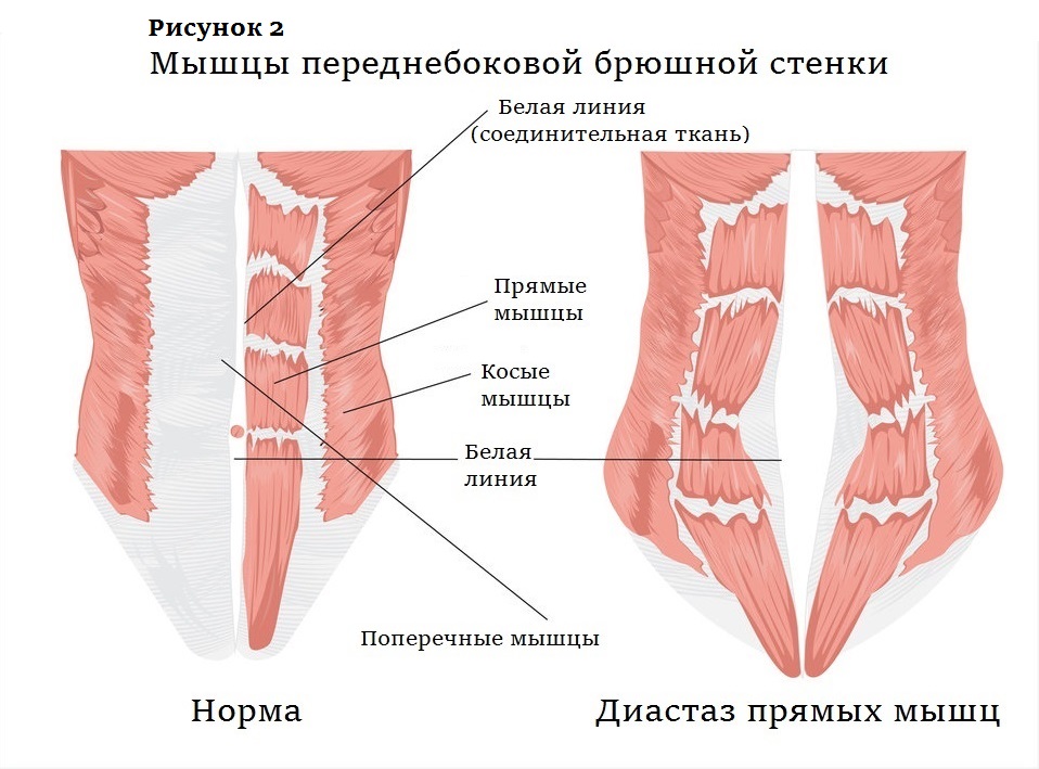 Белая линия вместе с влагалищем прямой мышцы обеспечивает механическую стабильность передней брюшной стенки. Однако она все-таки растягивается, причем, из-за ориентации коллагеновых волокон, растягивается преимущественно вширь. И когда она становится слишком широкой, развивается диастаз передних мышц живота (ДПМ).