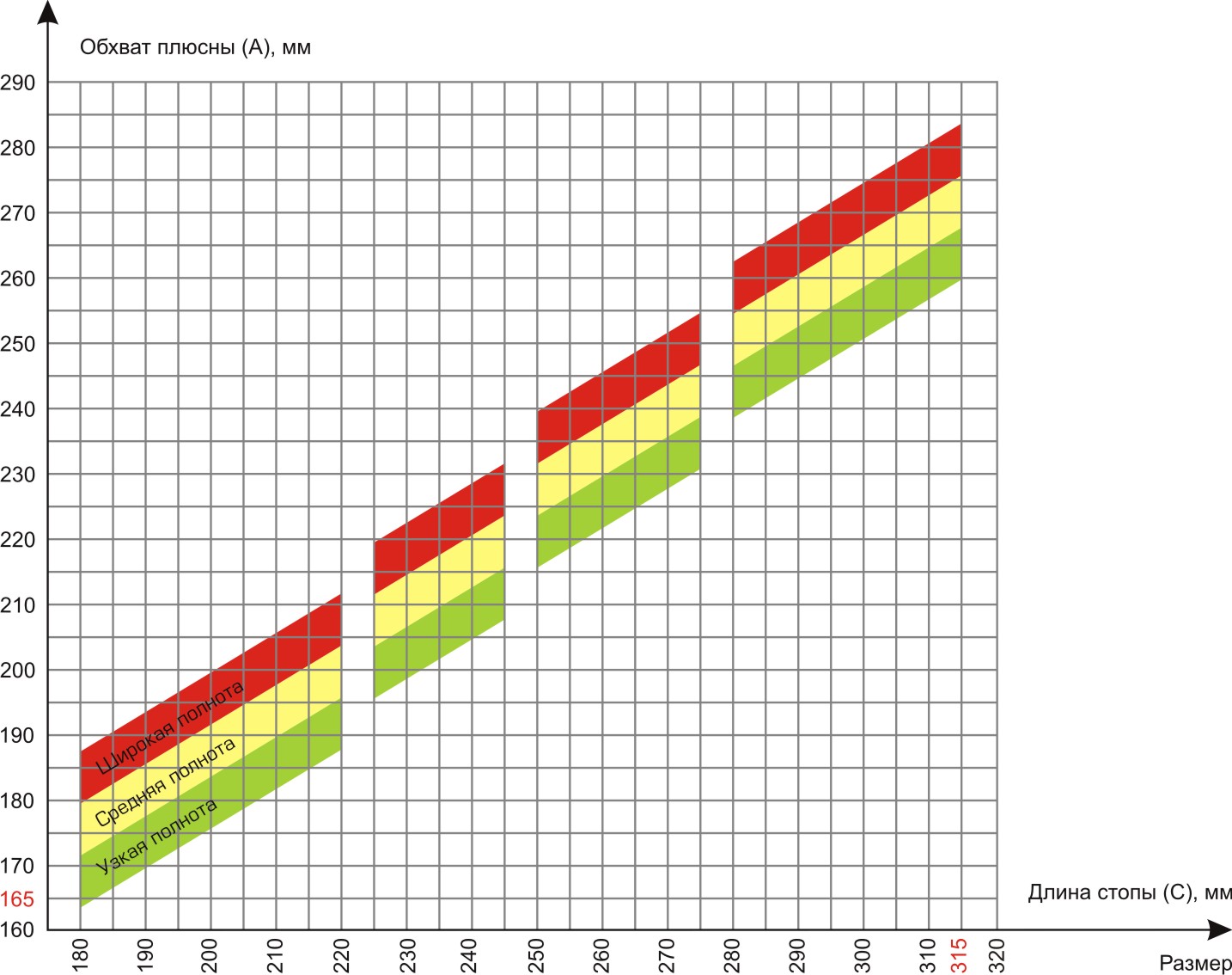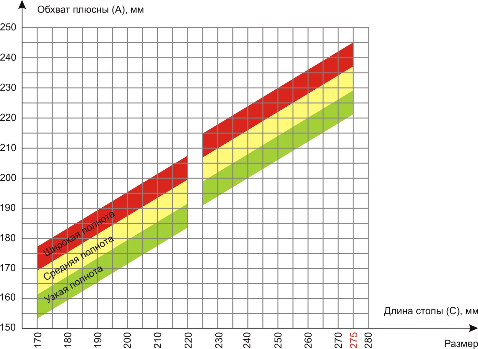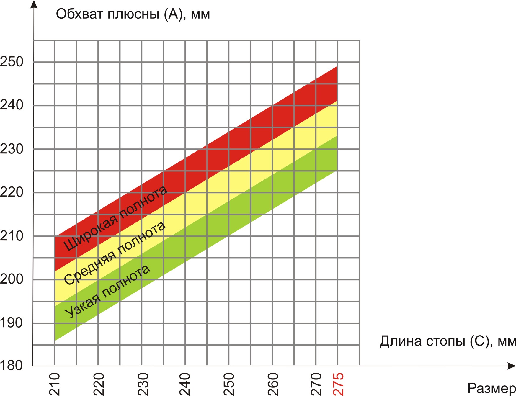 Все модели танцевальной обуви TM ECKSE предлагаются в трёх вариантах полнот: узкой, средней и широкой. Если Вы намерены самостоятельно определить полноту требуемой Вам обуви, измерьте Ваши стопы в соответствии с приведёнными инструкциями и воспользуйтесь графической информацией, размещённой ниже.