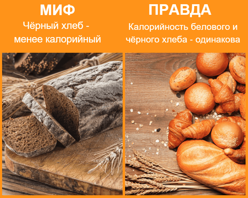 В то же время нужно понимать, что хлеб не зря значится в списках запрещённых продуктов для большинства диет. Возьмём для примера всеми любимый Бородинский. Его калорийность на 100 г составляет 208 ккал. Тонкий кусочек (1/2 часть отрезанного прямоугольника) весит 25 г, то есть содержит 52 ккал, что достаточно много для такого маленького веса. С батоном ещё хуже. В Нарезном — 264 ккал, а в одном тонком ломтике (30 г) — целых 79 ккал. За этими цифрами нужно тщательно следить. Сумеете вписать их в суточный калораж — можете включать этот продукт в меню своей диеты.
