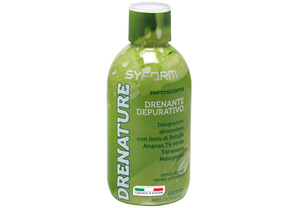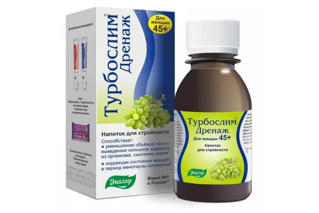 Бутылочка с этим средством за месяц употребления поможет избавится от отеков, поможет побороть целлюлит и лишний вес, улучшит метаболизм и работу желудочно-кишечного тракта. Состав средства не так идеален, но отзывы вполне положительны. Ингредиентами являются различные соки, экстракты зеленого чая, листьев почечного чая, листьев баросмы, листьев красного чая, цветов гибискуса, корня одуванчика, плодов ананаса. Имеются подсластители, что обеспечивают сладкий вкус.