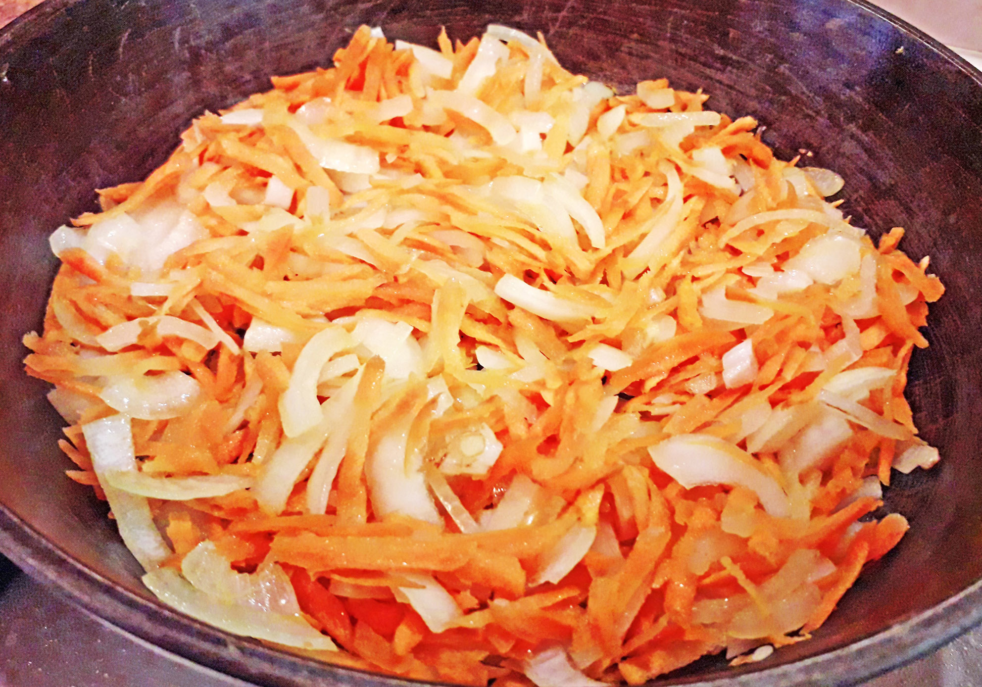 Измельченные морковь и репчатый лук немного пассеровать на разогретом масле.