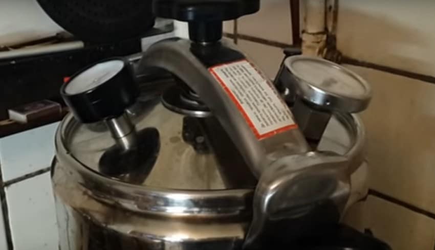 - Заливаем в устройство холодную чистую воду до уровня сужения горлышка банок. Закрываем скороварку крышкой и отправляем ее на сильный огонь. Доводим воду до кипения, после чего убавляем огонь до минимального. Оставляем консервы вариться на 2,5-3 часа. После трех часов консервирования снимаем скороварку с плиты и позволяем воде полностью остыть.