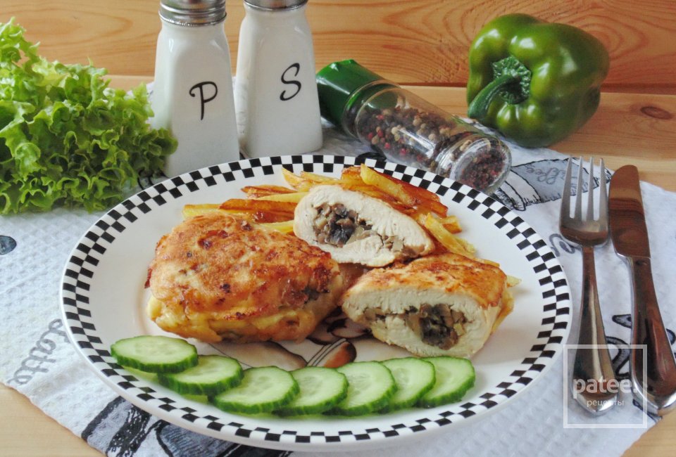 Куриные отбивные из филе курицы с грибами и сыром в духовке