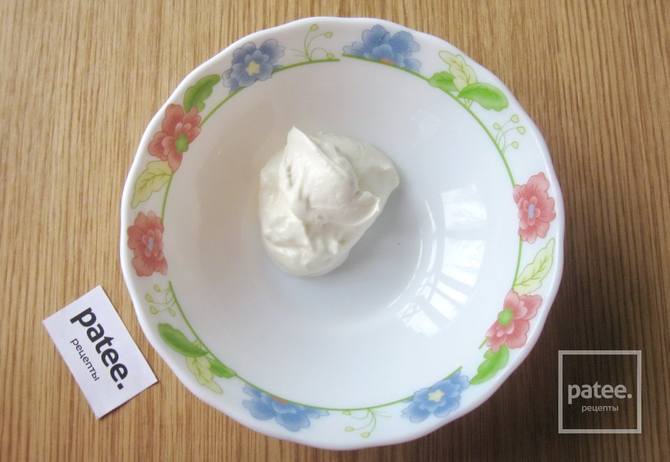 - Сверху смазываем майонезом, его можно заменить нежирной сметаной.