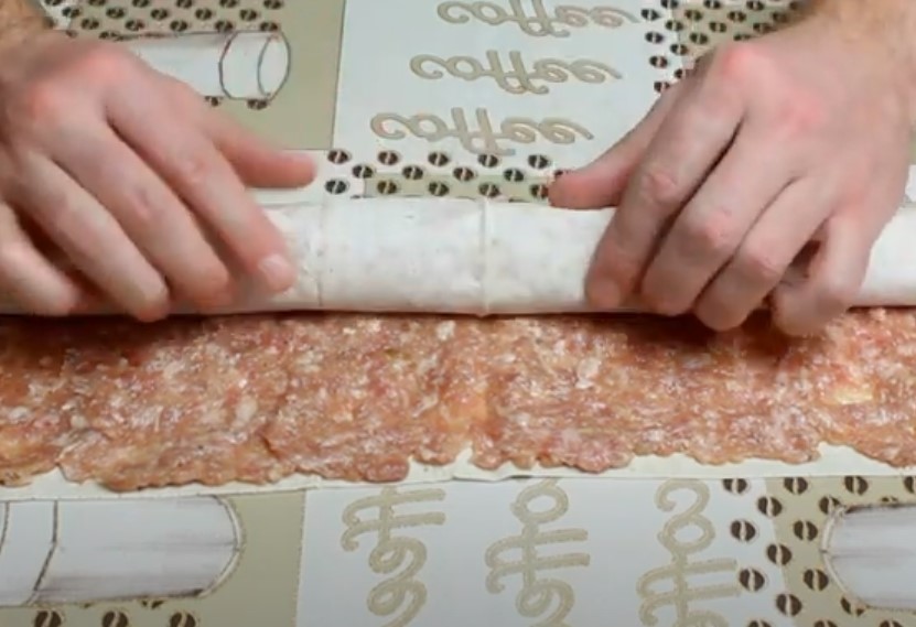 - Плотно сворачиваем в рулет;