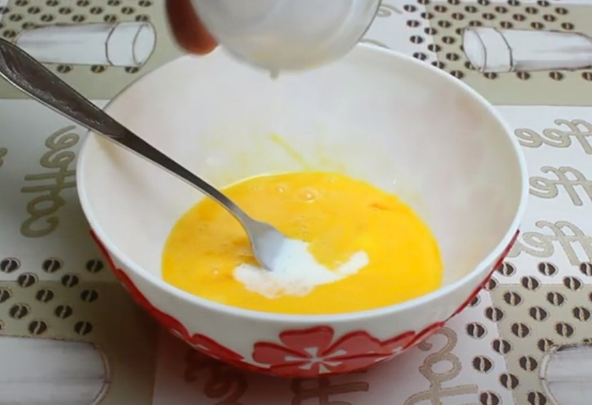 - В отдельной миске взбиваем яйцо миксером;
