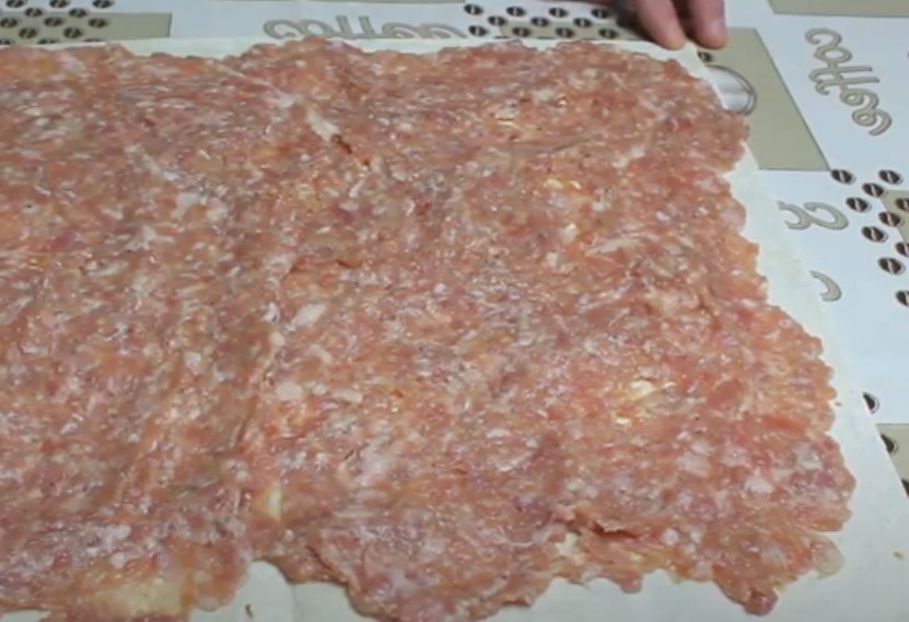 - На столе раскладываем лаваш и по его поверхности распределяем охлажденное пюре;