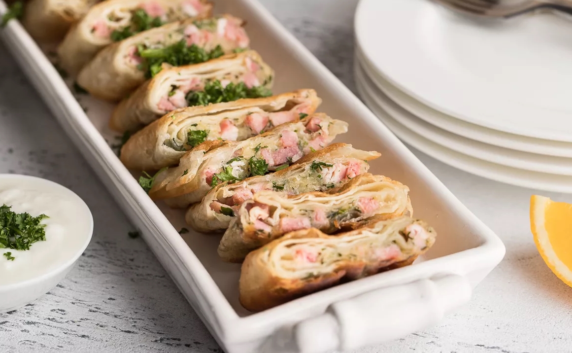 Интересный вариант вкусного и сытного домашнего угощения – конвертики из лаваша с начинкой из крабовых палочек. Такой продукт выйдет хрустящим и достаточно питательным.