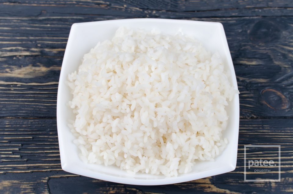 Отварите рис в подсоленной воде до полуготовности.