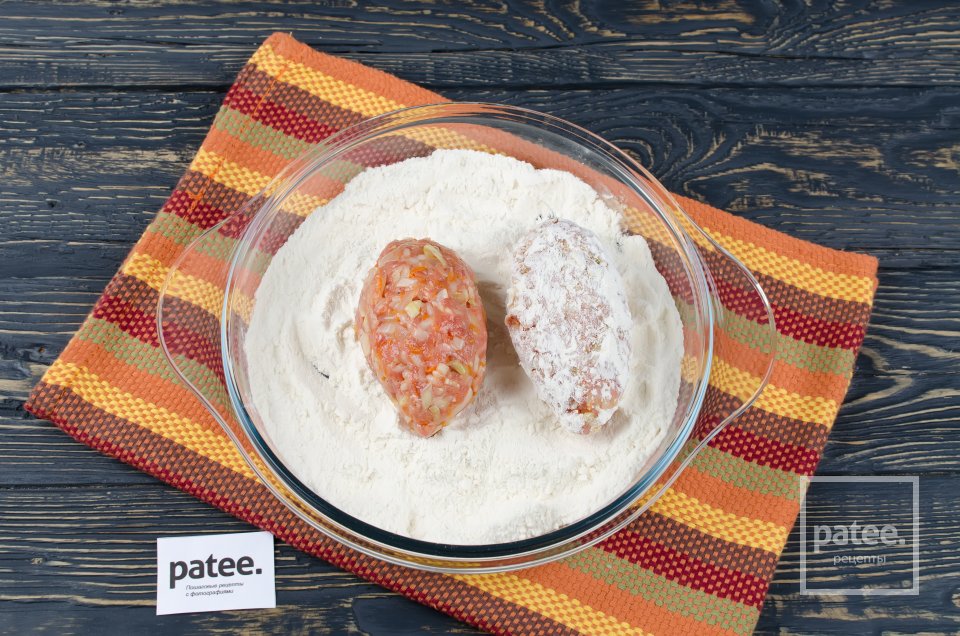 Сформируйте из фарша голубцы и обваляйте в муке.