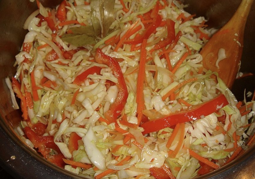 Эта маринованная капуста с болгарским перцем — уже готовый салат, вкусный и очень полезный, и готовится просто.
