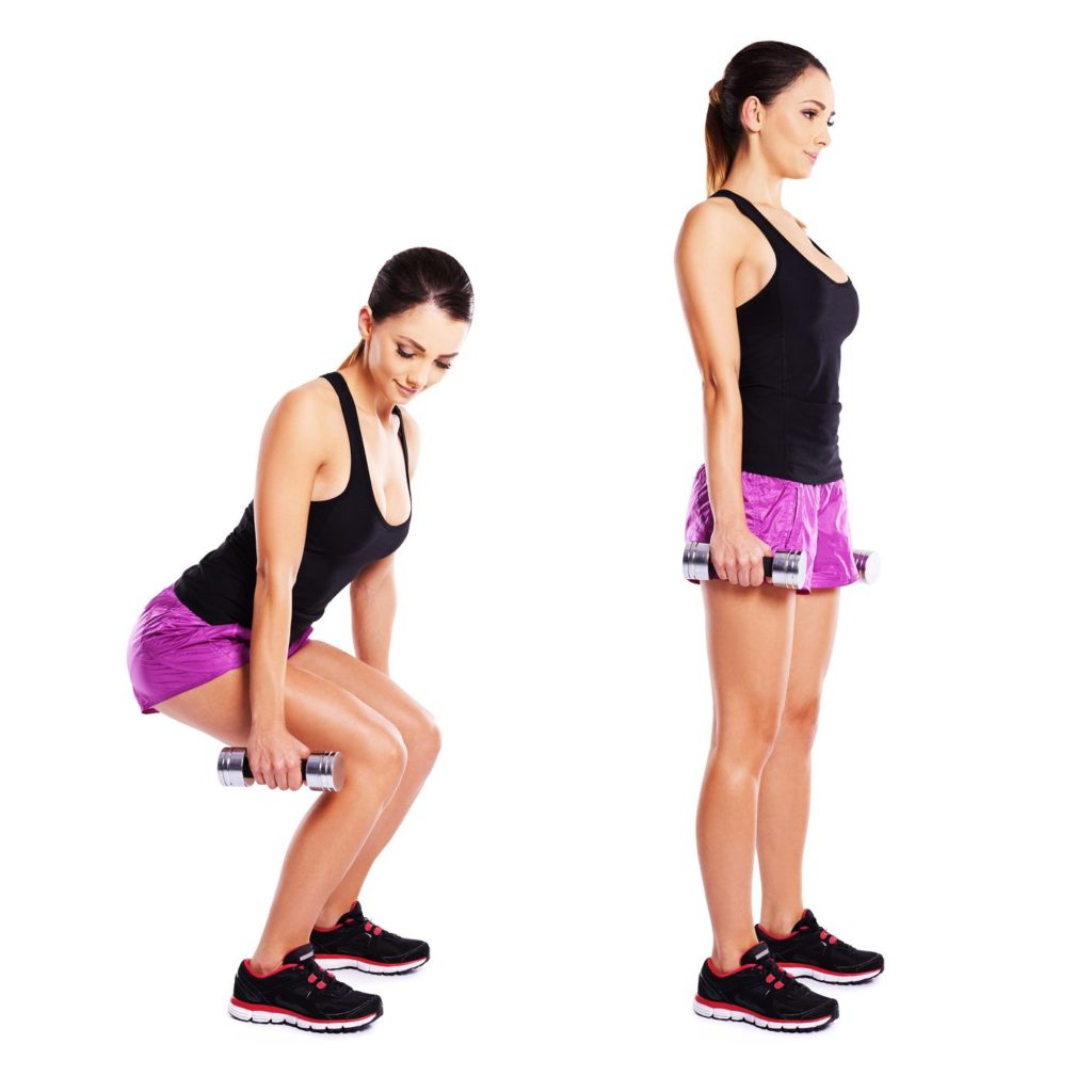 Приседания плие – отличные упражнения, как убрать жир между ног. Для повышения их эффективности можно использовать гантель или блин от штанги. Тут важна выносливость и координация.