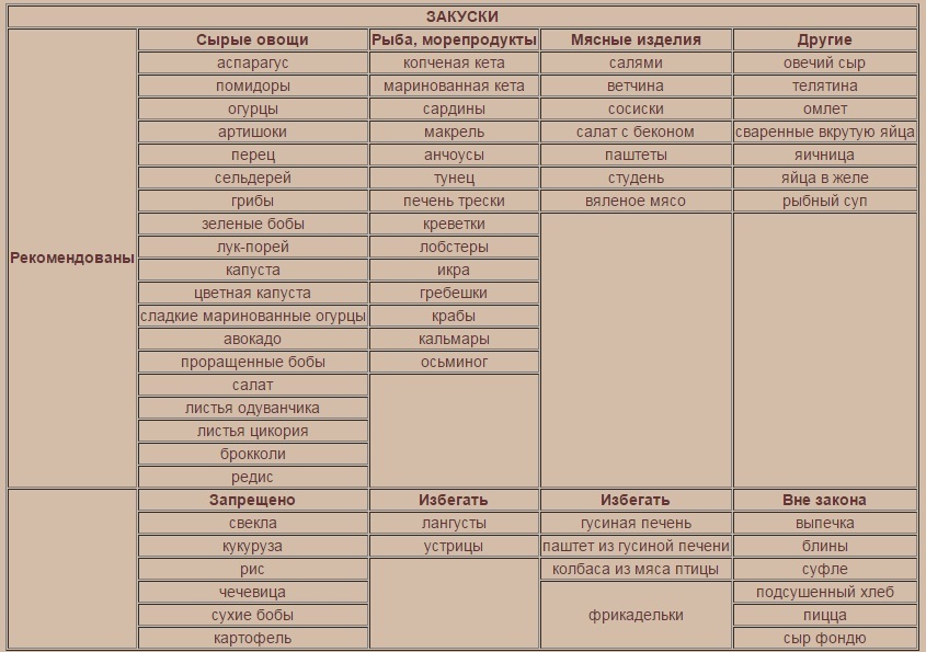 | 15-29 | Вишня, черный шоколад, абрикосы, перловка, кефир, сливы, арахис, сосиски, грейпфруты |