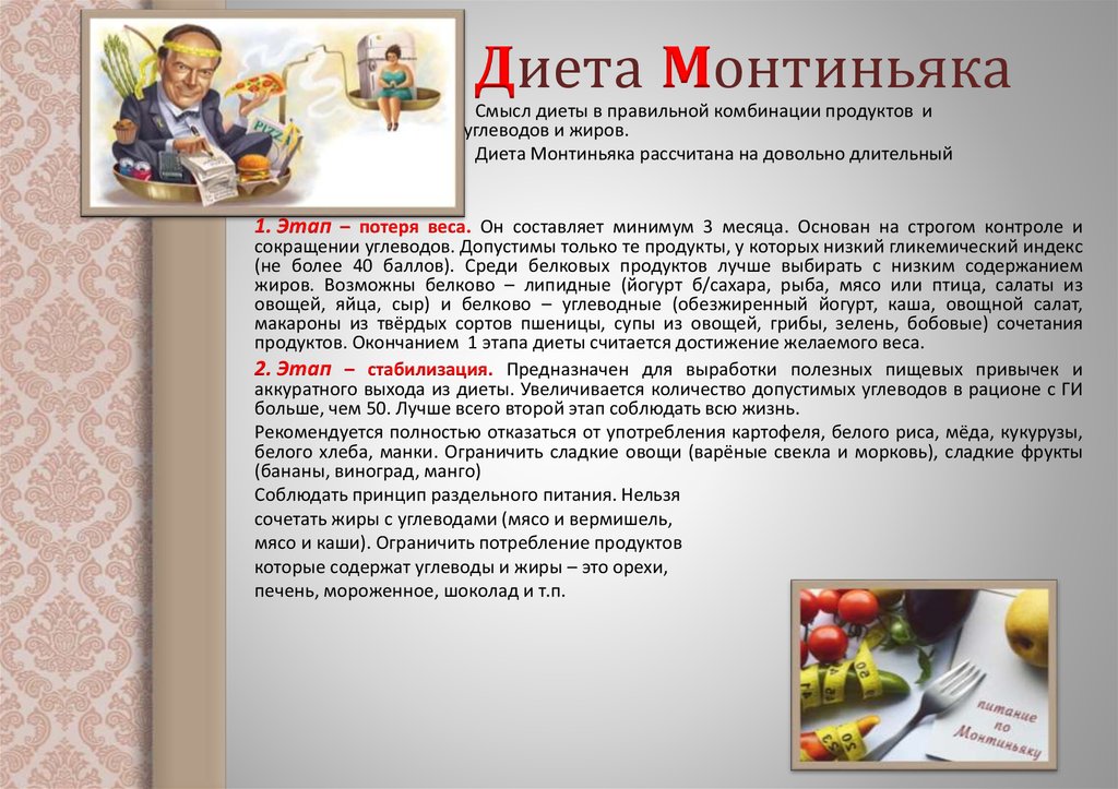 Диета Монтиньяка для похудения выгодно отличается от других методов отсутствием «голодовки». Она не вредит организму, а наоборот помогает поправить здоровье.