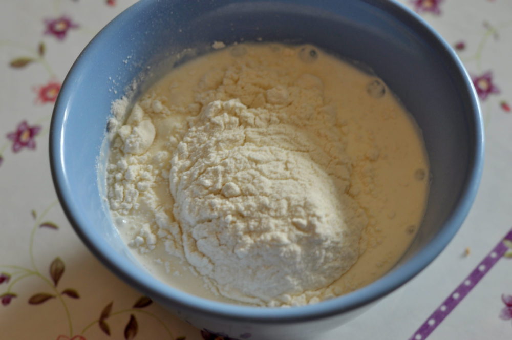 4 В сливки всыпаем муку, хорошо размешиваем, чтобы не было комочков.