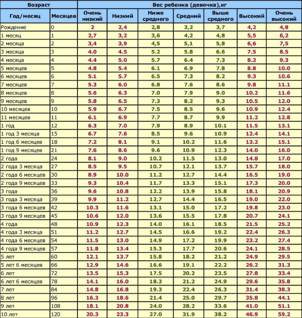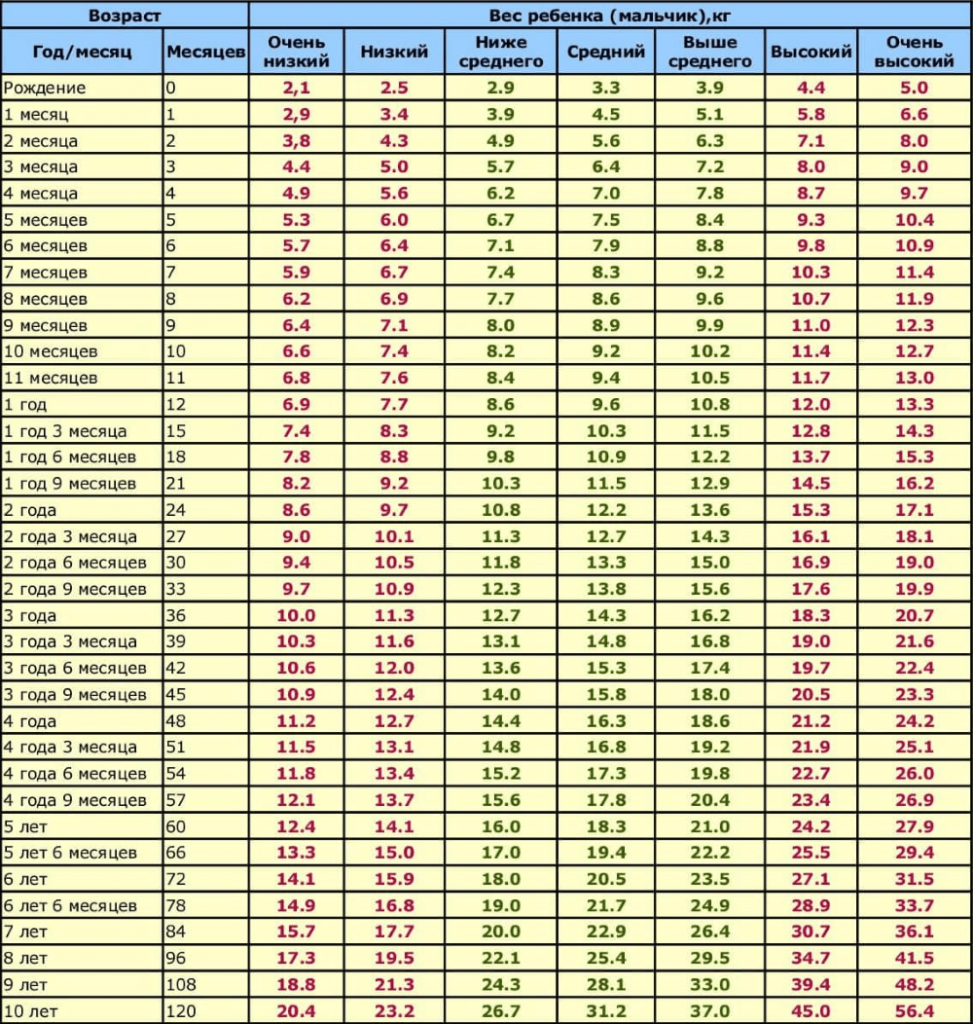 Нормальный вес ребенка. Нормы по возрасту ребенка в таблице, определение нормы веса по росту ребенка.
