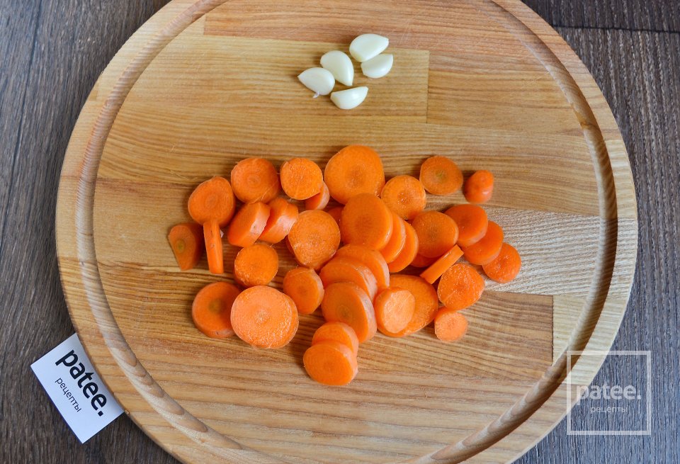 - Морковь порезать колечками, а перец соломкой. Всё высыпать в мультичашу и тушить 6 минут.