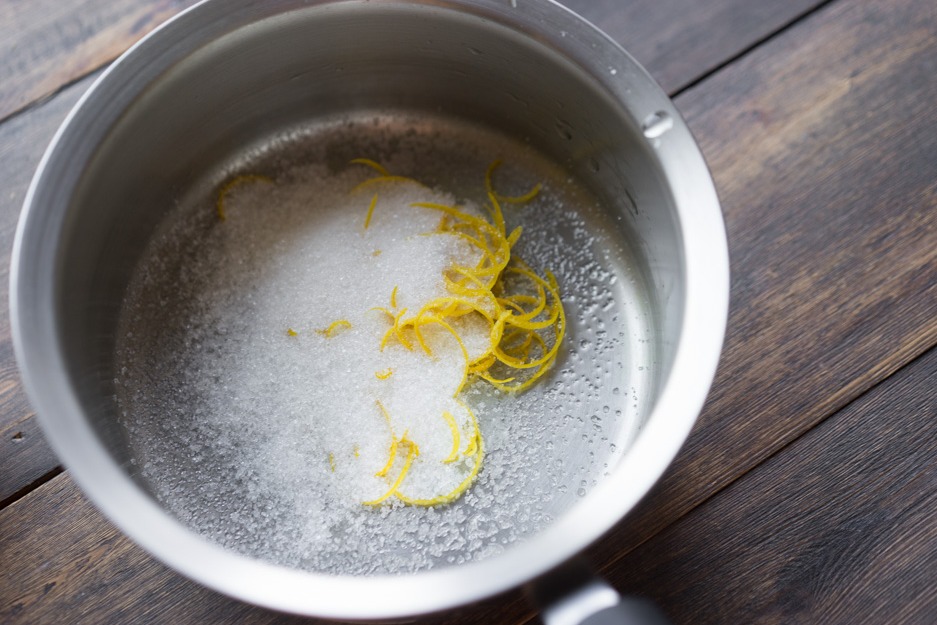 - Поместите сахар, воду и цедру в любую удобную жаропрочную емкость