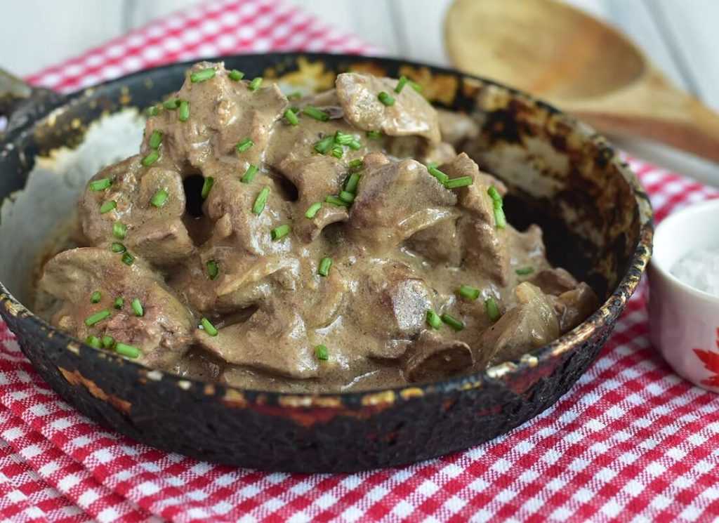 Аппетитная сметанка как нельзя лучше сочетается с говяжьей печенью. Нежно обволакивающая ее и тающая во рту… ммм… вкуснота. Вы долго будете сытыми, да довольными.