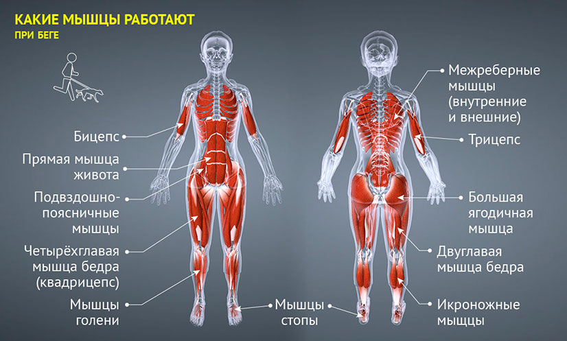 Бег задействует все поверхностные и множество глубоких мышц, что делает его крайне полезной нагрузкой для всего тела