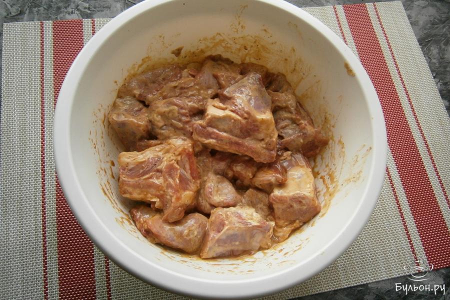 Можно просто пожарить мясо на ребрах с луком, но я предлагаю сначала замариновать его. Вкус шашлыка вам обеспечен.